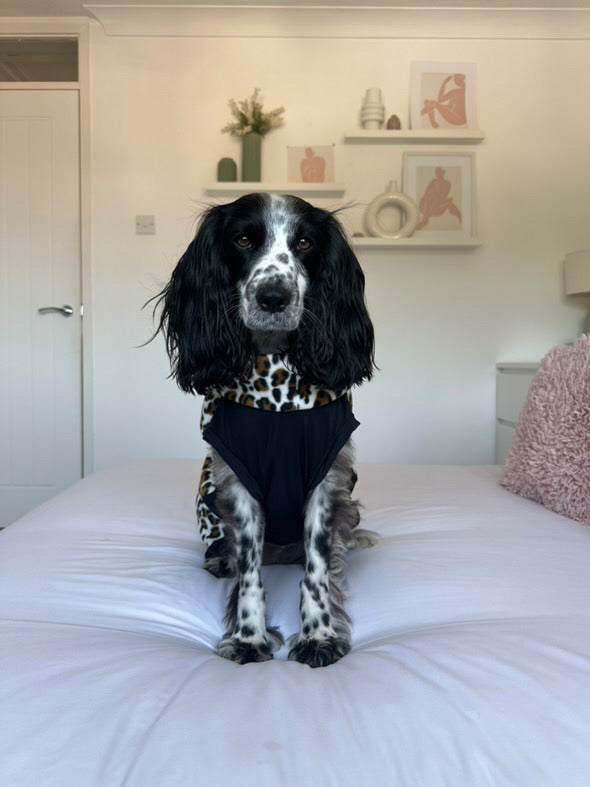 Please leave your dog’s neck, chest, and back measurements in the text area, - there is a measuring guide in the images. Also let me know if it is for a male dog & I can make the underbelly shorter to avoid toileting on the fabric